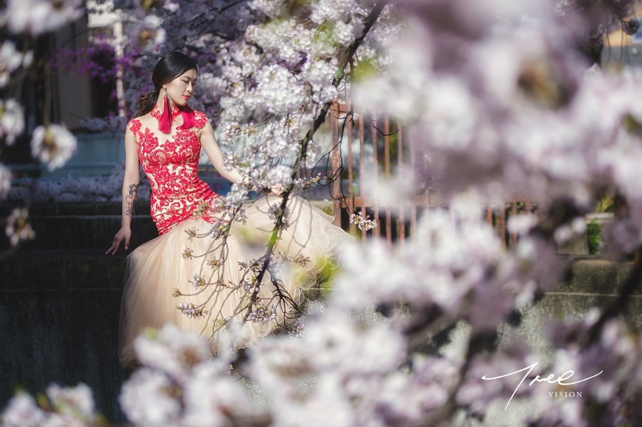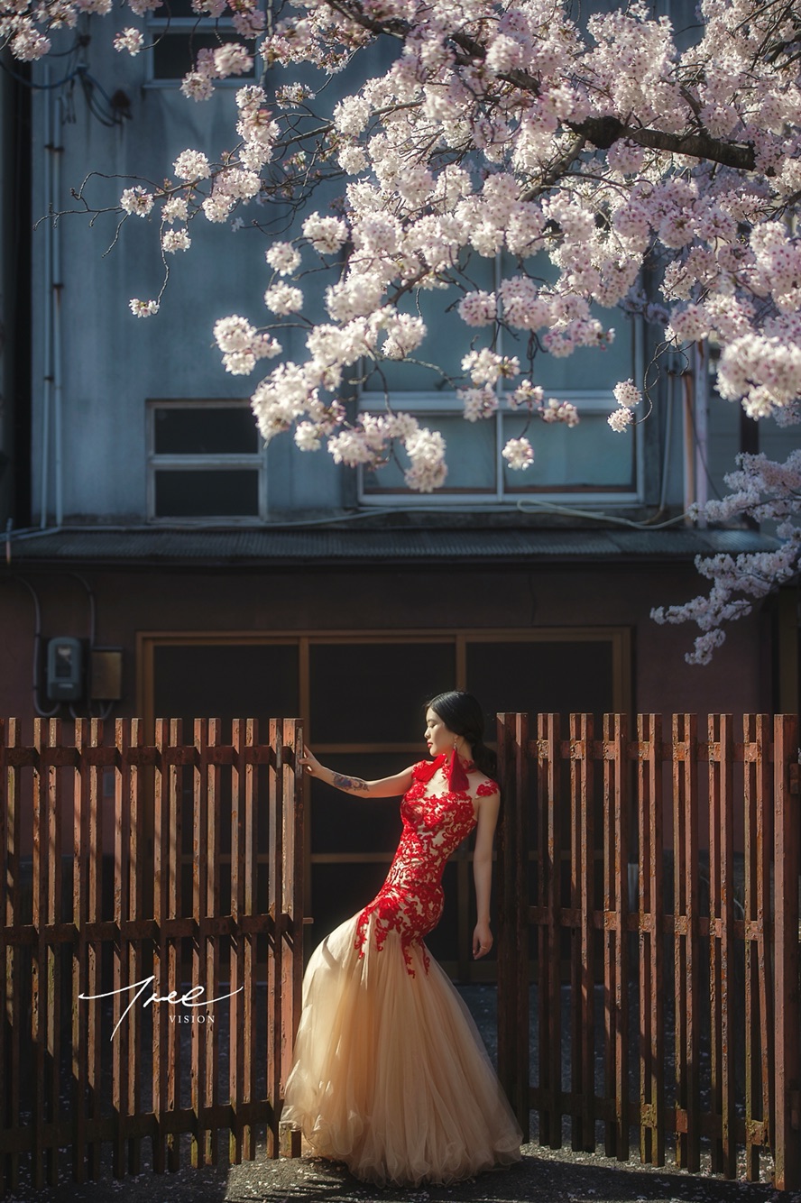 盛开的樱花纷飞落下,宛若精灵起舞,不染尘世的喧嚣。穿梭于这美丽的都市中,尽情去留下属于我们的红色印记。