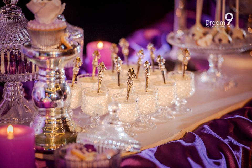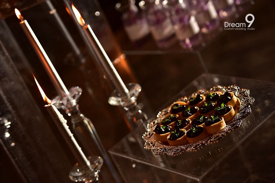 签到板是一页层叠展开的蓝图,爱的见证,每一页都很重要。精致的蓝白色点心和剔透的水晶器皿淡淡而雅,小伴娘和我们一起正在排练,当这场晚宴开启时,她将打开关于蓝图的第一页,用这一束童话的光开启,关于梦的篇章。