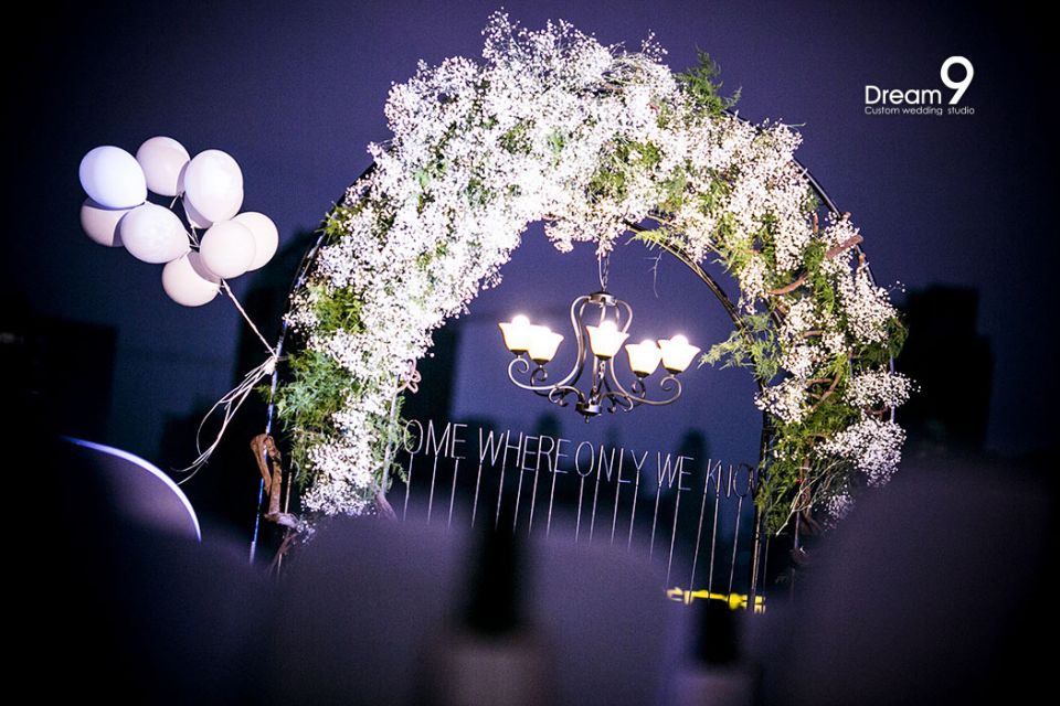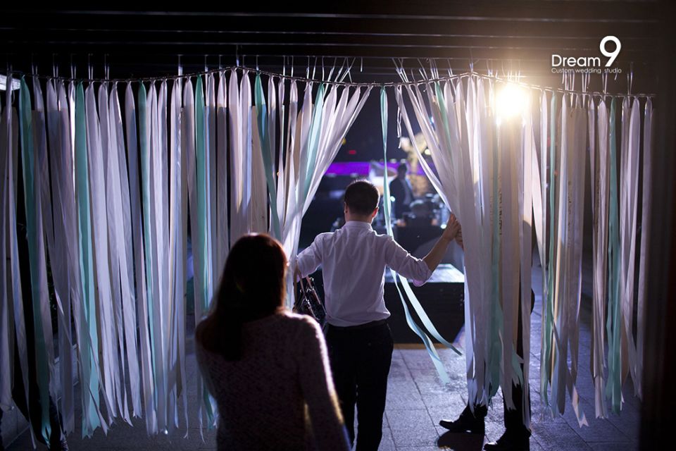 无论是随风起舞的丝带簇,还是满天星遍布的好似秘密花园的铁艺门,甚至是藏进麻绳球的喜糖,是不是总有些欲遮还羞的感觉。其实,最美好莫过于不期而遇的惊喜。