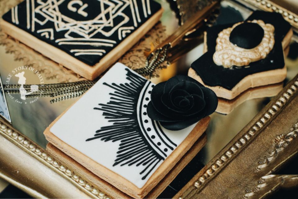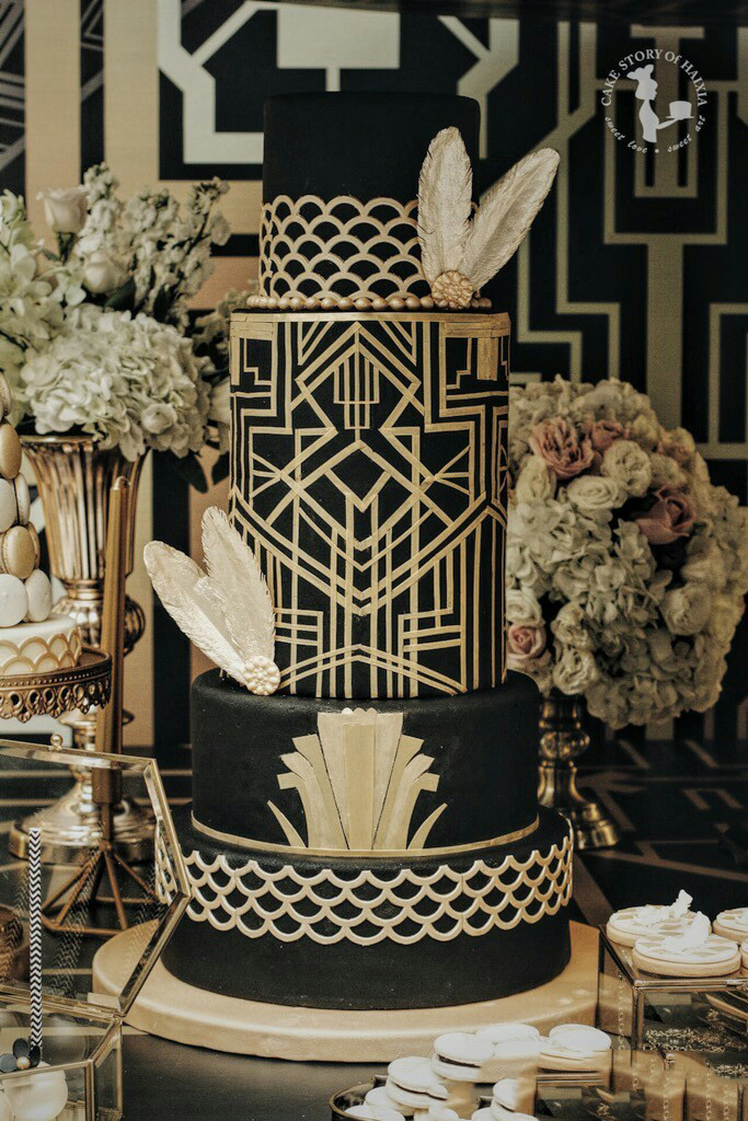 黑金色调盖茨比~超爱今天的主题色调[心]就是…就是…主蛋糕的线条贴的真心累